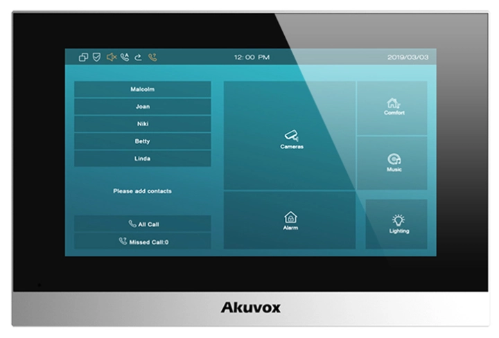 Monitor C313W-LP-2 do systemu 2 przewodowego marki AKUVOX. Wideomonitor został wyposażony w dotykowy wyświetlacz o przekątnej 7" TFT LCD.