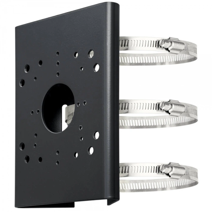 Uchwyt BCS-AS-ATU-G, obejma słupowa. Produkt można montować na słupach o średnicy do 150 mm. Możliwy montaż wewnętrzny jak również na zewnątrz. W zestawie z uchwytem znajdują się trzy stalowe opaski zaciskowe. Uchwyt słupowy posiada otwory montażowe dostosowane do wybranych puszek montażowych BCS LINE.