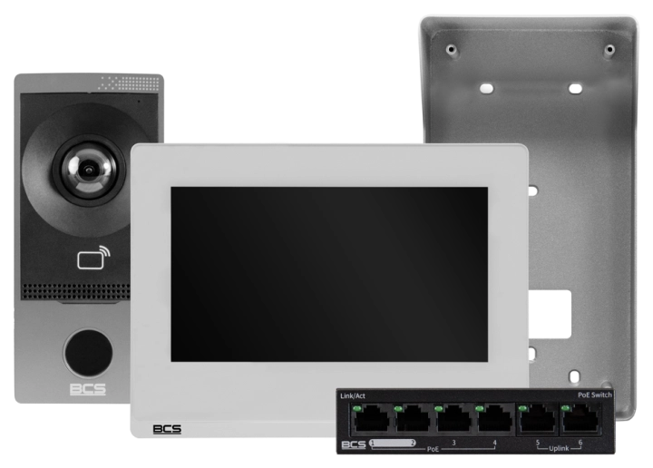 Zestaw wideodomofonowy BCS-P-VIS02 to kompletny system kontroli wejścia do domu lub lokalu, oparty na technologii IP. Zestaw przeznaczony do instalacji jednorodzinnych oraz niewielkich obiektów komercyjnych. System umożliwia komunikację audio-wideo, zdalne sterowanie wejściem oraz integrację z siecią lokalną i aplikacją mobilną. Dzięki wykorzystaniu PoE instalacja jest uproszczona i nie wymaga rozbudowanego okablowania zasilającego.