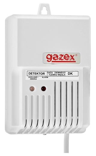 Detektor DK-22/E Gazex służy do monitorowania obecności tlenku węgla (tzw. czadu) w pomieszczeniach zamkniętych. Urządzenie zasilane jest napięciem 230 VAC, posiada przewód sieciowy z wtyczką bez styku ochronnego. Producent zaleca odcięcie wtyczki i podłączenie na stałe przewodu zasilającego do instalacji elektrycznej, w puszce rozdzielczej w ścianie.