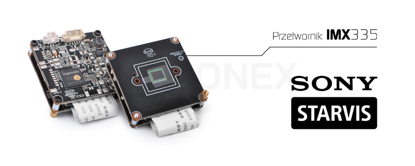 Seria kamer EVX-FHD oparta została o najnowszej generacji przetwornik obrazu SONY STARVIS model IMX335 (matryca CMOS). Rozwiązanie takie zapewnia uzyskanie doskonałego obrazu o rozdzielczości 5.0 MPx. Przetwornik IMX335 o typie 1/2.8" i liczbie efektywnych pikseli 5.14 Mpx, charakteryzuje wysoka czułość, obraz pozbawiony smużenia oraz naturalne odwzorowanie kolorów R, G, B dzięki wykorzystaniu zaawansowanej techniki filtrów mozaikowych. Najnowszej generacji chip od firmy SONY wykorzystuje technologię STARVIS “back-illuminated”, czyli tzw. strukturę tylnej iluminacji polegającą na szczególnym rozmieszczeniu światłoczułych elementów w celu zwiększenia ilości światła pochłanianego przez kamerę. Skutkuje to poprawą doświetlenia i jakości obrazu, zwłaszcza w warunkach nocnych.