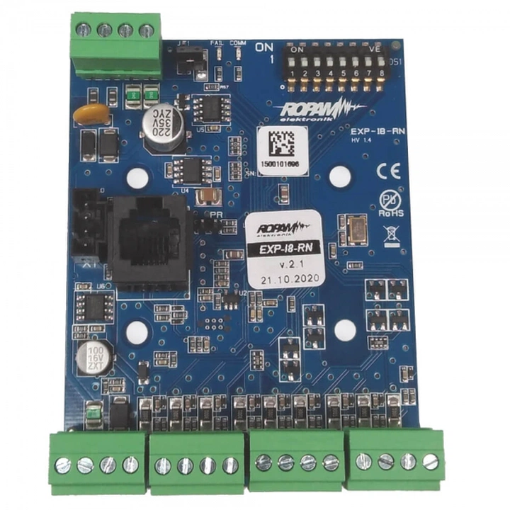 Moduł wejść EXP-I8-RN Ropam przeznaczony jest do współpracy z centralą alarmową serii NeoLTE-IP, NeoLTE-IP-64, Neo-IP, Neo-IP-64. Transmisja z wejść modułu jest zgodna ze specyfikacją danej centrali. Urządzenie posiada możliwość lokalnego zasilania z zasilacza PSR-ECO-2012.