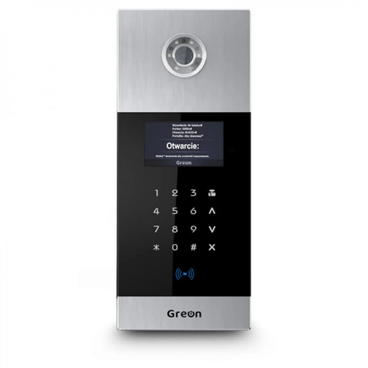 Wideodomofon IP/SIP GR-OS3 Greon z funkcją otwarcia bezdotykowego po ROZPOZNANIU TWARZY. Stacja bramowa pełni funkcję wideodomofonu jedno lub wielomieszkaniowego oraz sieciowej kontroli dostępu (wejście Wiegand). Panel został zaprojektowany dla biur, osiedli mieszkaniowych, hoteli, szkół oraz domów jednorodzinnych. GR-OS3 pełni funkcje czytnika kart Mifare, szyfratora, dzwonka do drzwi, wideodomofonu z elektroniczną listą lokatorów i personalizowanym wyświetlaczem 4,3" TFT LCD. Może realizować komunikację z telefonem SIP, smartfonem oraz wideodomofonem za pośrednictwem protokołu SIP. Dzięki rozbudowanym funkcjom i prostej obsłudze jest to najlepszy wybór dla wideodomofonu lub sieciowej kontroli dostępu. System domofonowy Greon charakteryzuje brak ograniczeń w zakresie odległości, ilości użytkowników oraz brak zajętości linii. Rozmowy prowadzone są w trybie P2P czyli w tym samym czasie może rozmawiać "każdy z każdym".