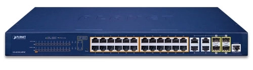 PLANET GS-4210-24P4C to gigabitowy switch zarządzalny PoE+ marki PLANET wyposażony w inteligentne funkcje PoE. Zapewnia zarządzanie podwójnym stosem IPv6/IPv4. Przełącznik posiada wbudowany gigabitowy silnik przełączania L2/L4 wraz z 24 portami 10/100/1000BASE-T z 30-watowym 802.3at PoE+ i 4 dodatkowymi gigabitowymi portami combo TP/SFP. Dzięki całkowitemu budżetowi mocy do 375 W dla różnych rodzajów aplikacji PoE zapewnia szybkie, bezpieczne i ekonomiczne rozwiązanie sieciowe Power over Ethernet dla małych firm i przedsiębiorstw.