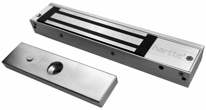 Zewnętrzna elektrozwora Hartte MSS280S. Zwora stosowana jest do montażu nawierzchniowego. Siła przyciągania w tym modelu wynosi 2800N, czyli maksymalny nacisk to 280kg. Cechuje je wodoodporność (IP67). Zwora charakteryzuje się brakiem magnetyzmu szczątkowego, co oznacza, że po odłączeniu zasilania zwora elektromagnetyczna zwalnia płytę trzymającą i umożliwia bezzwłoczne otwarcie drzwi. Zwora elektromagnetyczna ma niewielkie wymiary 250x47x31 mm i wagę około 2kg. Jest odporna na korozję.
