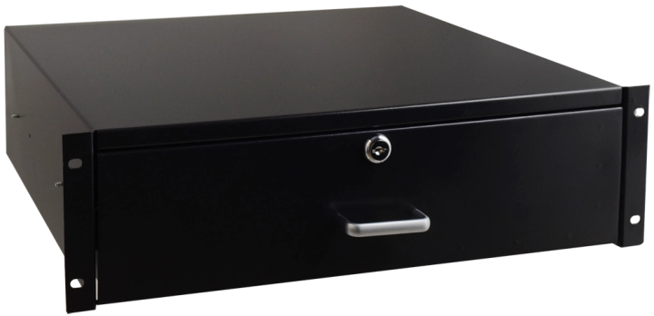 Szuflada RASR3 o wysokości 3U marki PULSAR. Przeznaczona jest do montażu w szafach RACK 19". Zamykana jest na kluczyk od frontu - w komplecie znajdują się dwa klucze. Montowana jest doczołowo na prowadnicach - możliwy częściowy wysuw.