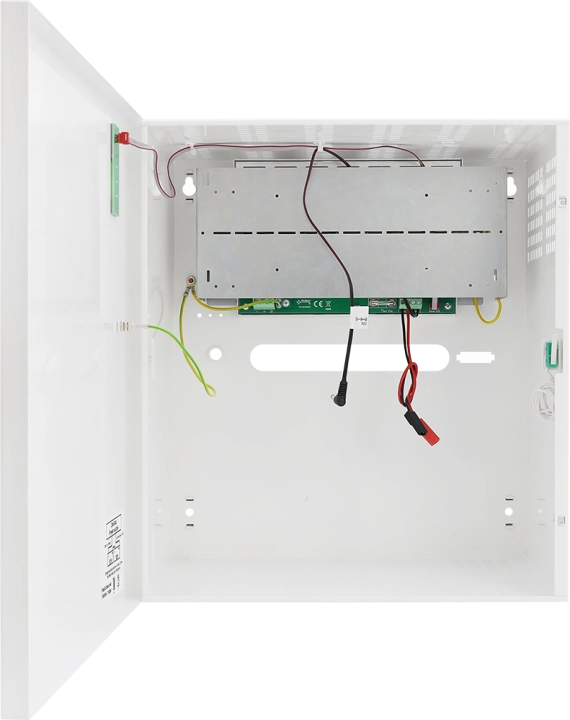 SWB-120 został umieszczony w solidnej, metalowej obudowie w kolorze RAL 9003, wyposażonej w mikroprzełącznik sabotażowy reagujący na otwarcie drzwiczek. Wewnątrz znajduje się demontowalna blacha montażowa, umożliwiająca instalację switcha o maksymalnych wymiarach 245 × 150 × 90 mm. Na froncie obudowy umieszczono optyczne wskaźniki LED, informujące o stanie zasilacza – obecności napięcia AC/DC oraz procesie ładowania akumulatora.