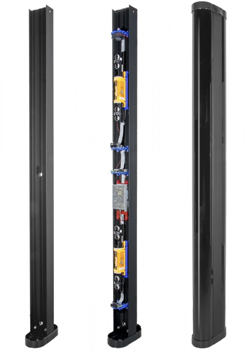 TWD202RR OPTEX to dwustronna, dwumetrowa, wolnostojąca kolumna o zakresie detekcji 360°. Ten model umożliwia zamontowanie jednej bariery z ogrzewaniem z każdej strony. Montaż do podłoża. Montaż aktywnych barier podczerwieni w kolumnach (zamiast na ścianach i słupach) zwiększa bezpieczeństwo, ponieważ znacznie utrudnia potencjalnym intruzom rozpoznanie liczby i wysokości zainstalowanych barier.