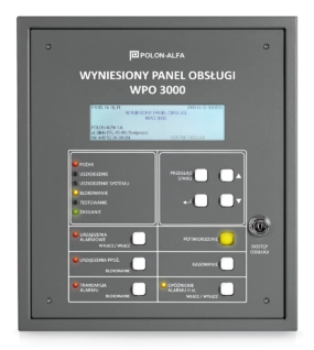 WPO 3000 jest to panel wyniesiony, współpracujący z centralą systemu POLON 3000. Urządzenie przeznaczone jest do bezpośredniej obsługi centrali przez przeszkoloną obsługę obiektu oraz służby ratownicze.